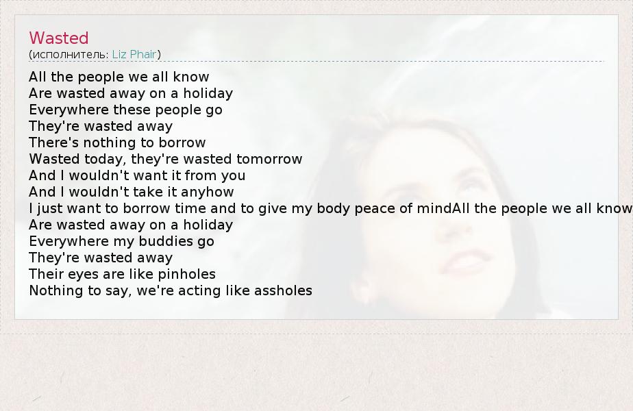 I just want to borrow time and to give my body peace of mindAll the people we all know