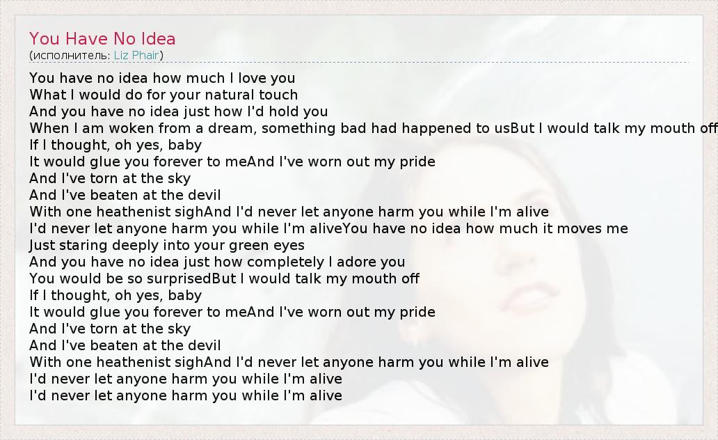 А как ты думаешь, о чем песня "You Have No Idea" ?