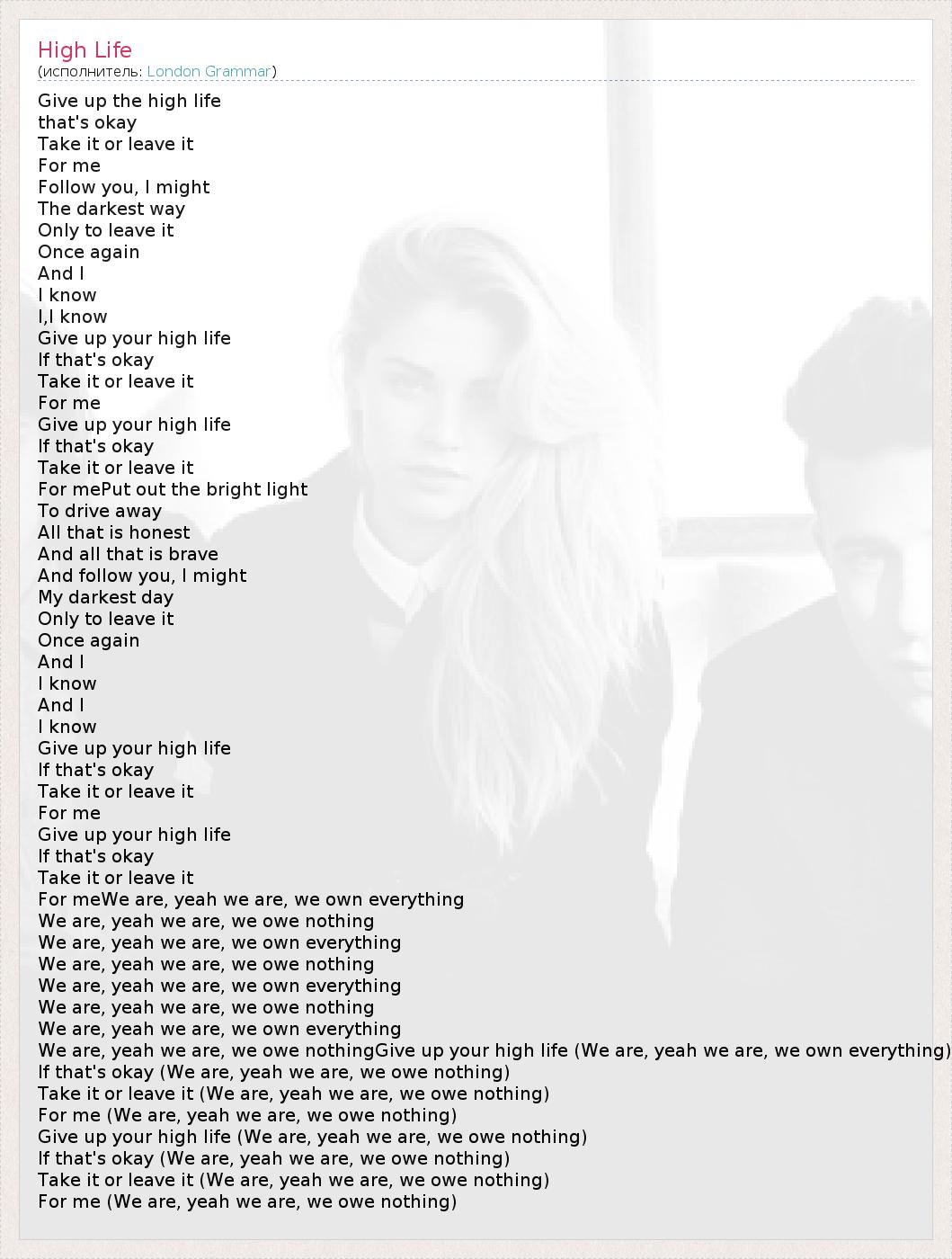 Это интересно:London Grammar — британский музыкальный коллектив, образованный в 2009 году в Лондоне. В состав входят вокалистка Ханна Рид (Hannah Reid), гитарист Дэн Ротман (Dan Rothman) и мультиинструменталист Дот Мейджор (Dot Major).Ханна Рид и Дэн Ротман познакомились в 2009 году, будучи студентами Ноттингемского университета, и вместе начали музицировать; позднее к ним присоединился Дот Мейджор.... продолжение