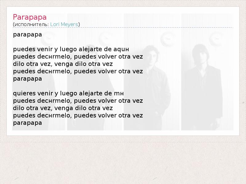 parapapa puedes venir y luego alejarte de aquн puedes decнrmelo, puedes volver otra vez dilo otra vez, venga dilo otra vez puedes decнrmelo, puedes volver otra vez parapapa quieres venir y luego alejarte de mн puedes decнrmelo, puedes volver otra vez dilo otra vez, venga dilo otra vez puedes decнrmelo, puedes volver otra vez parapapa