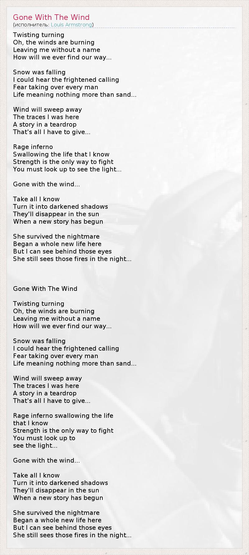 А как ты думаешь, о чем песня "Gone With The Wind" ?