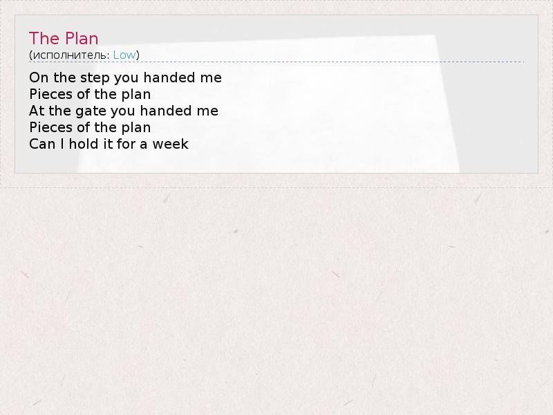 On the step you handed me Pieces of the plan At the gate you handed me Pieces of the plan Can I hold it for a week