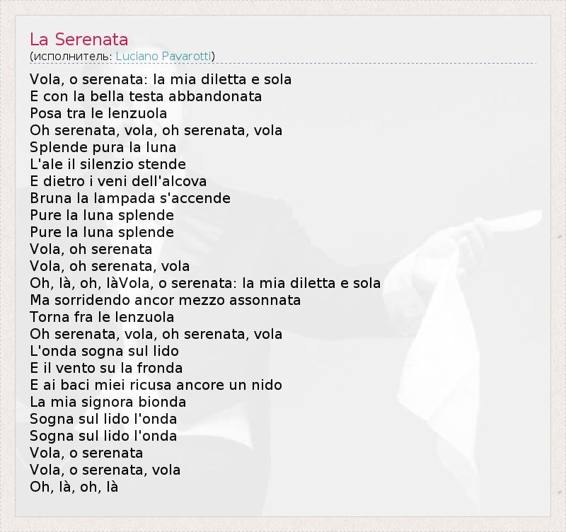 Oh, là, oh, làVola, o serenata: la mia diletta e sola