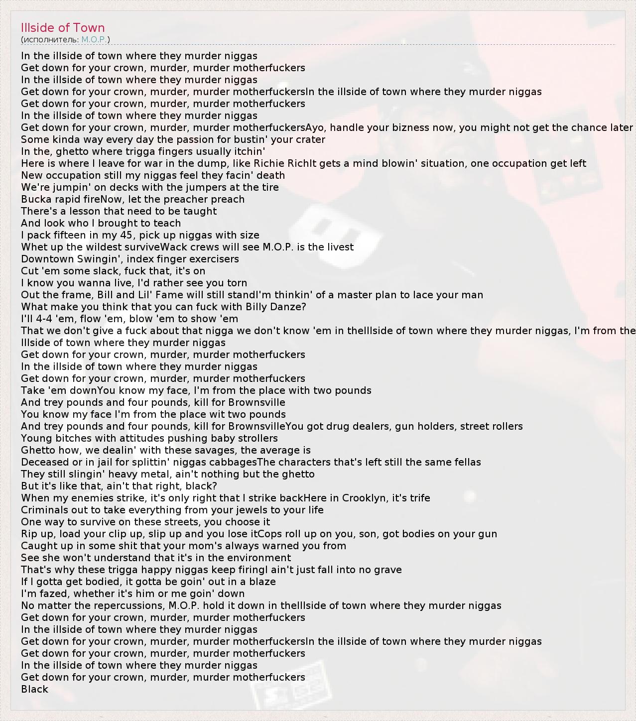 No matter the repercussions, M.O.P. hold it down in theIllside of town where they murder niggas