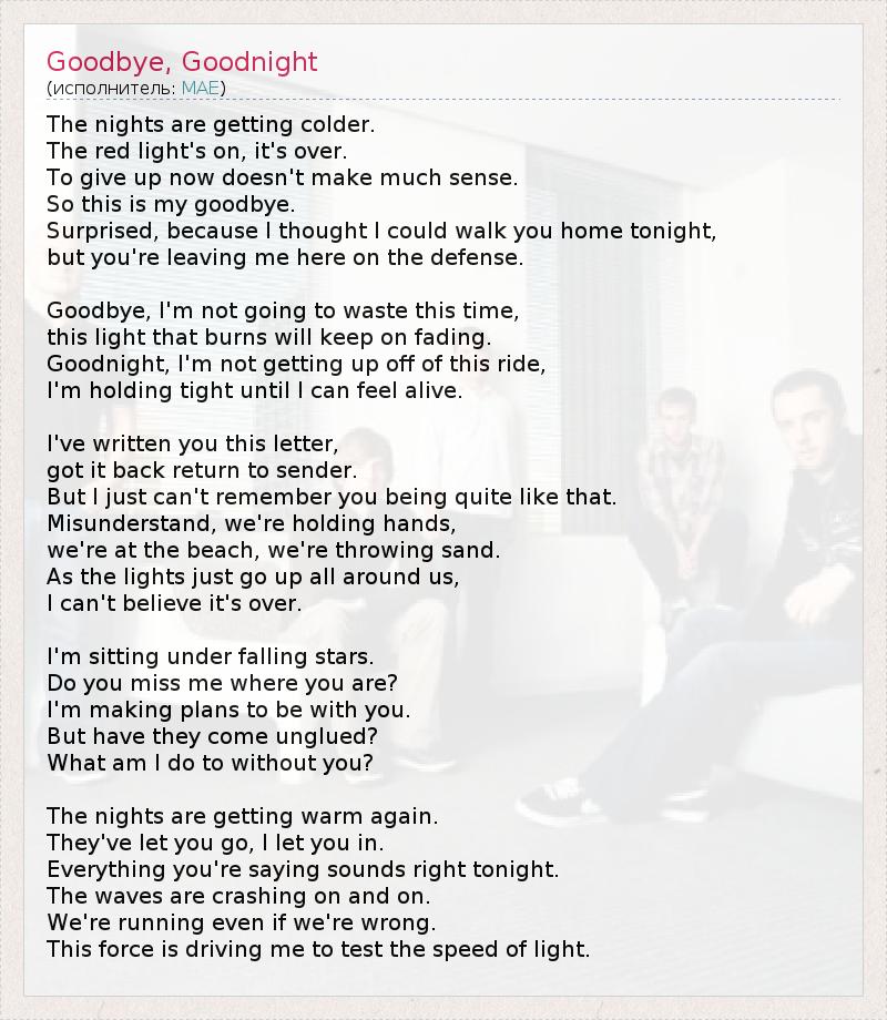 ГлавнаяИсполнителиMAEGoodbye, Goodnight