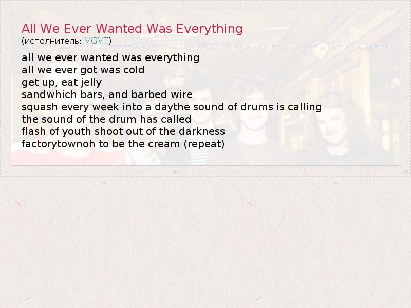 А как ты думаешь, о чем песня "All We Ever Wanted Was Everything" ?