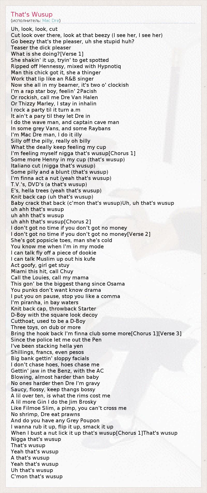 А как ты думаешь, о чем песня "That's Wusup" ?