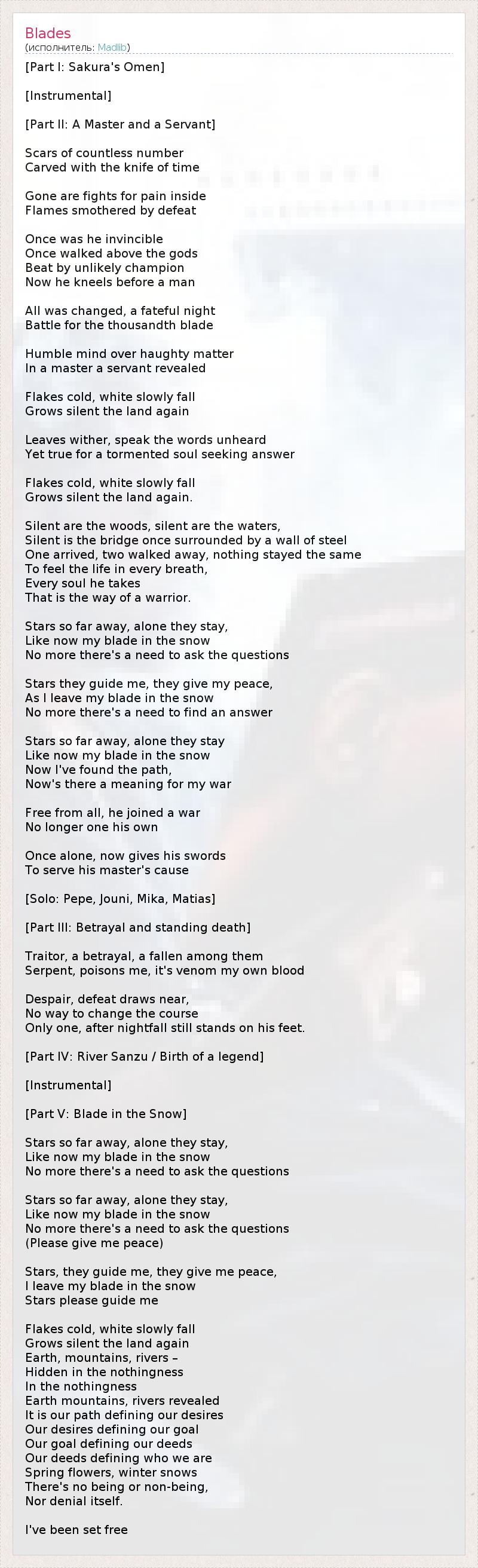 Как мой меч в снегу,
