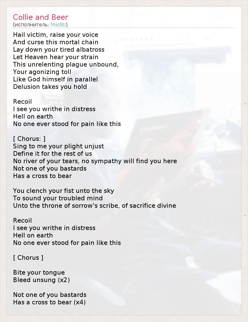 А как ты думаешь, о чем песня "Collie and Beer" ?