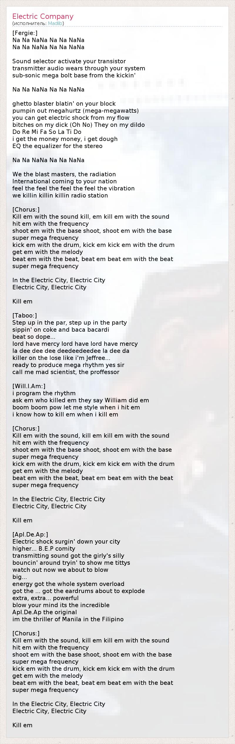 А как ты думаешь, о чем песня "Electric Company" ?