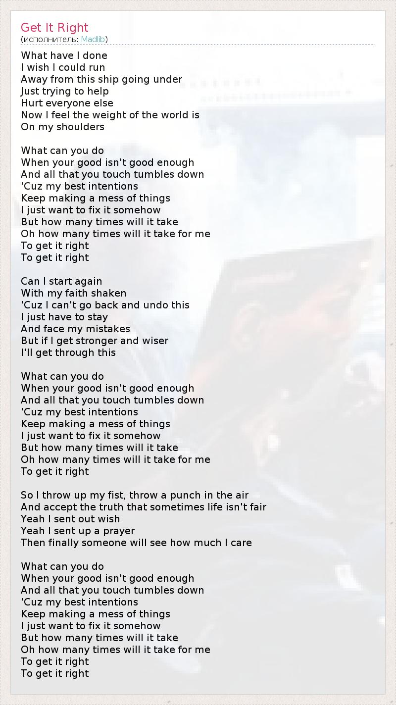 А как ты думаешь, о чем песня "Get It Right" ?