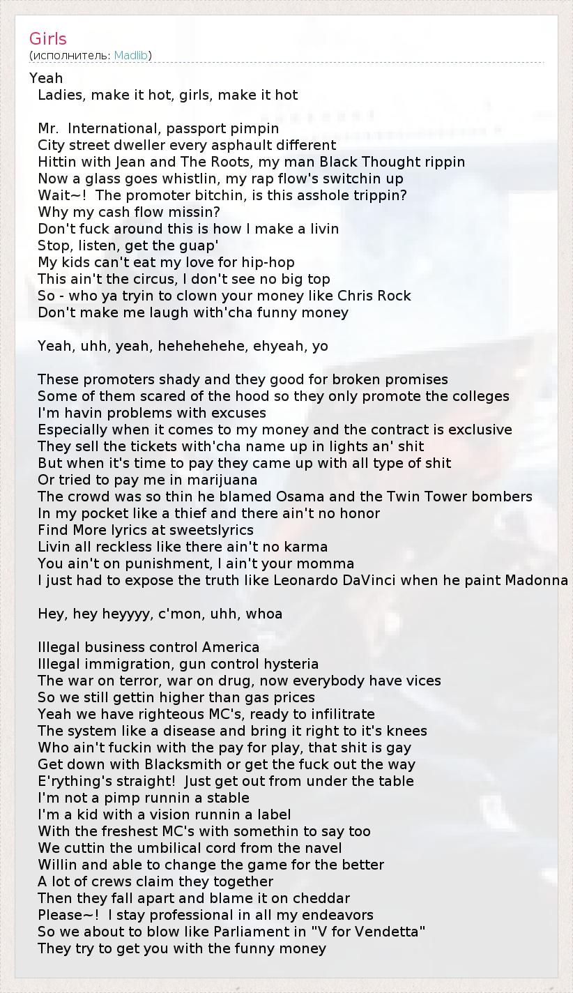А как ты думаешь, о чем песня "Girls" ?
