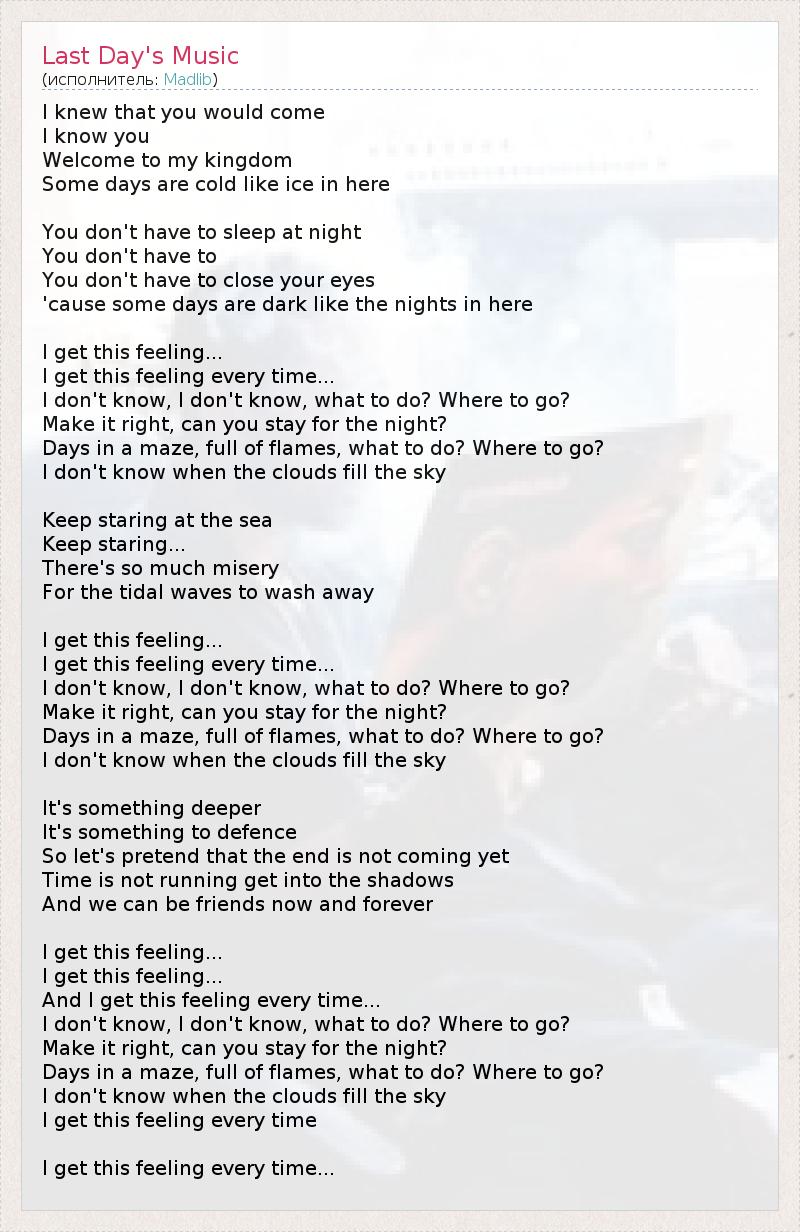 А как ты думаешь, о чем песня "Last Day's Music" ?