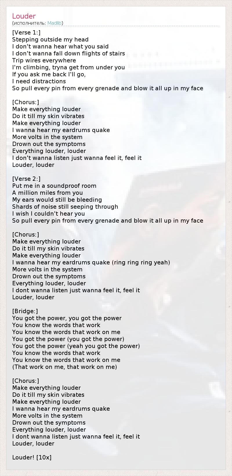 Я хочу слышать, как дрожат мои барабанные перепонки.