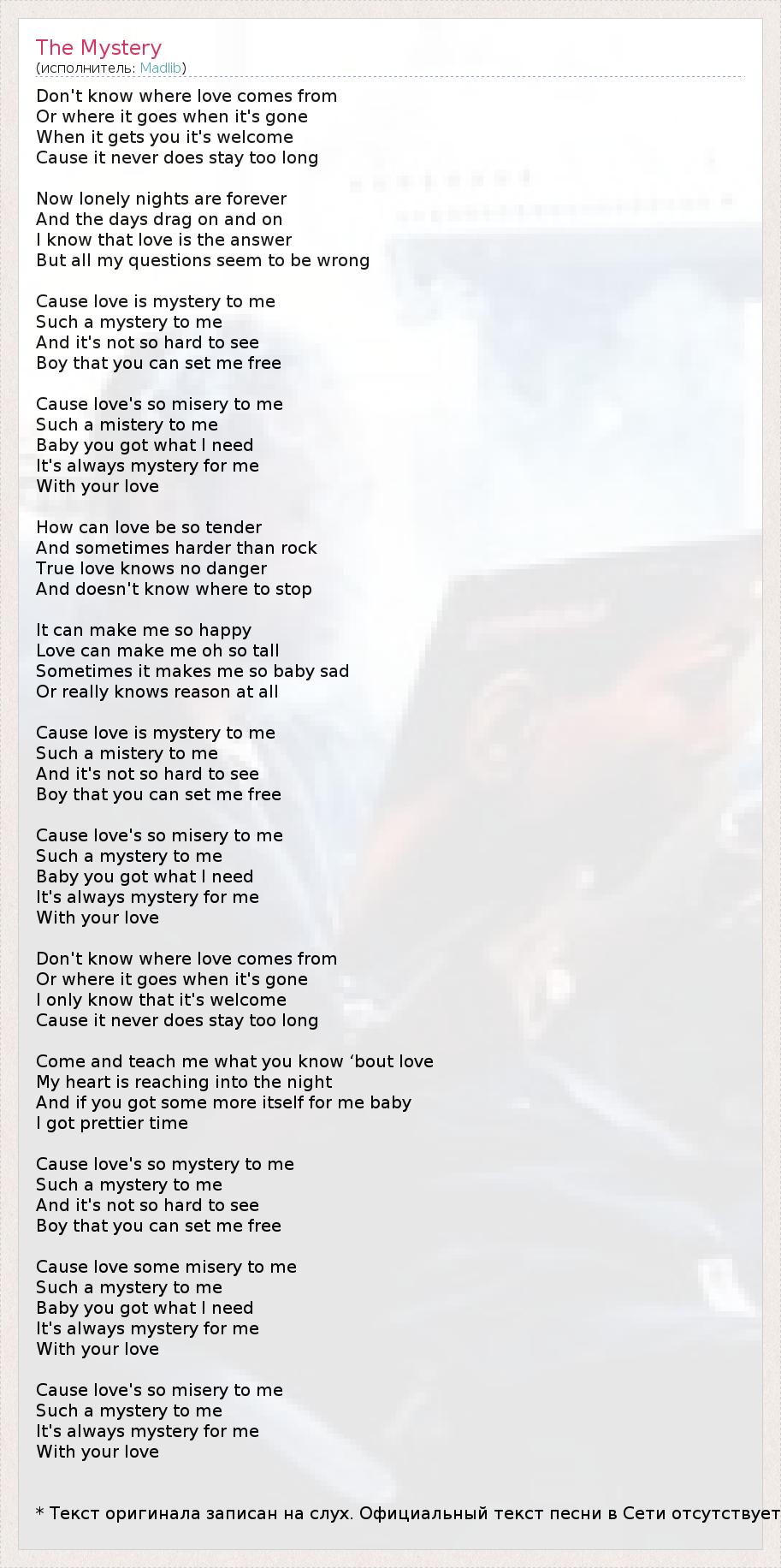 Cause love is mуstery to me