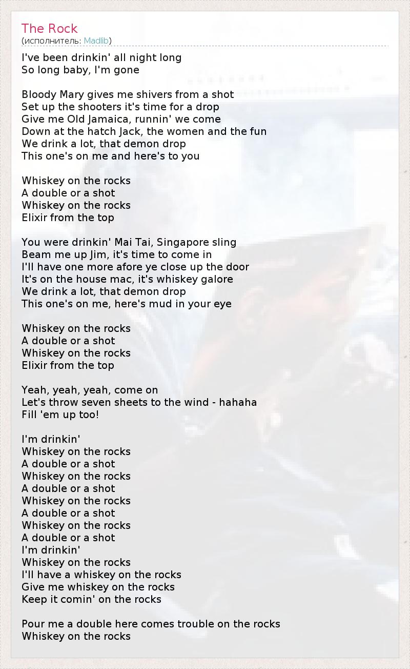 Give me whiskey on the rocks
