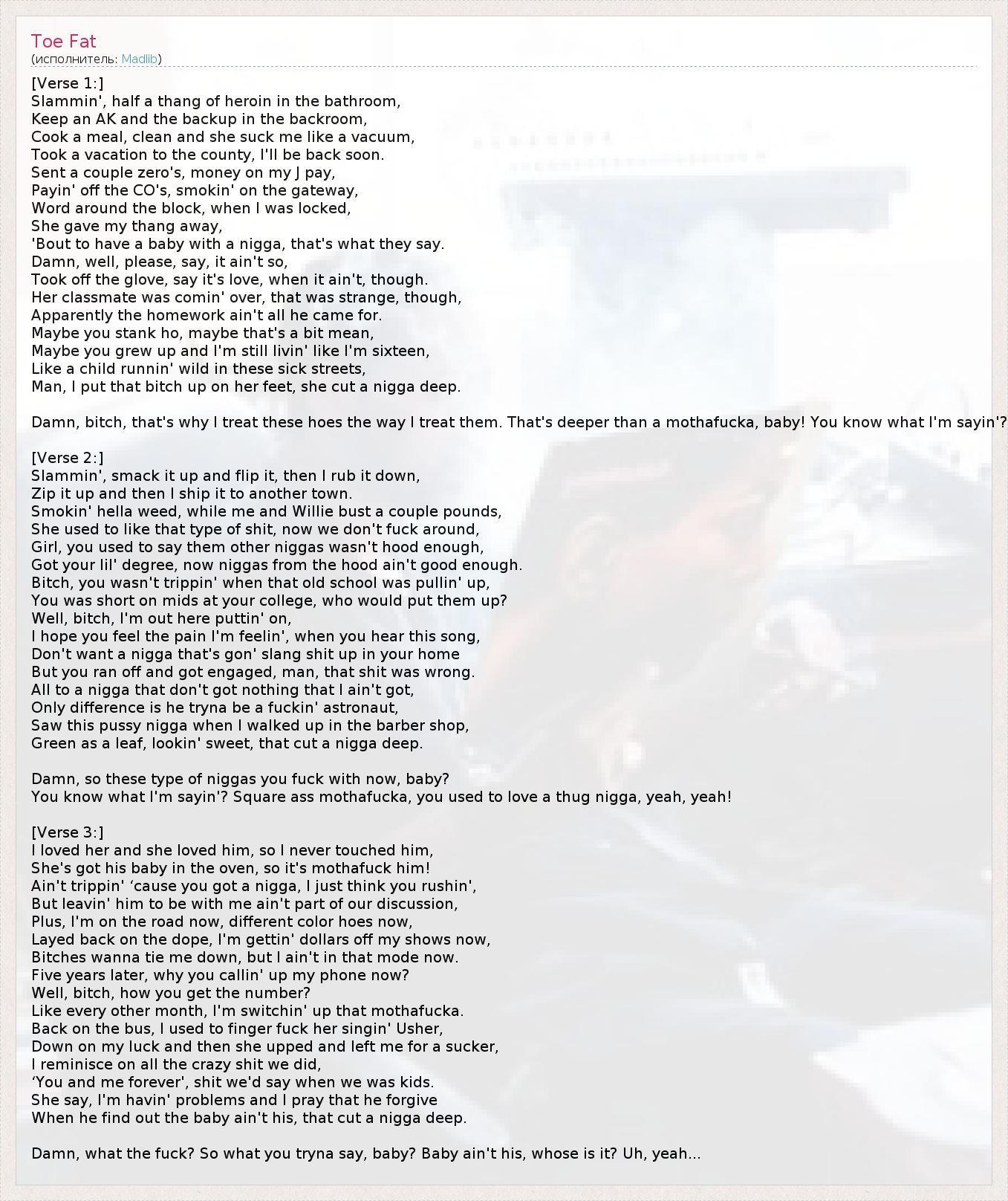 А как ты думаешь, о чем песня "Toe Fat" ?