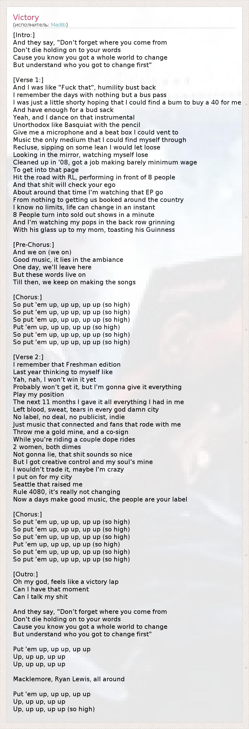 5 – "Гиннесс" – самое известное и потребляемое ирландское пиво, ставшее легендой и самым популярным брендом Ирландии. Кроме того, Маклемор по происхождению ирландец, и, упоминая это пиво, он намекает на то, что не забывает свои корни и гордится своим происхождением.