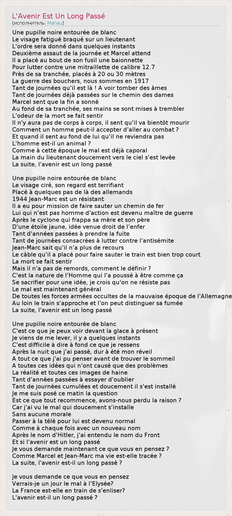 А как ты думаешь, о чем песня "L'Avenir Est Un Long Passé" ?