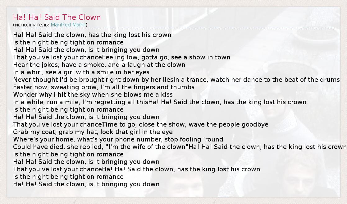 А как ты думаешь, о чем песня "Ha! Ha! Said The Clown" ?