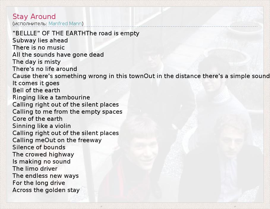 А как ты думаешь, о чем песня "Stay Around" ?