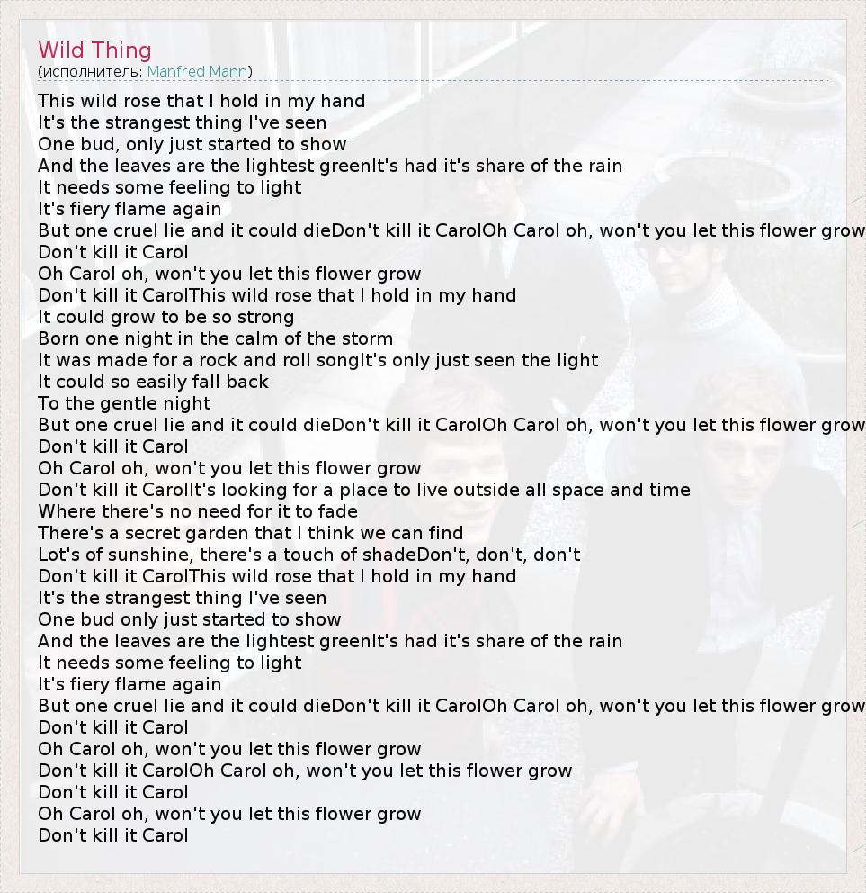 А как ты думаешь, о чем песня "Wild Thing" ?