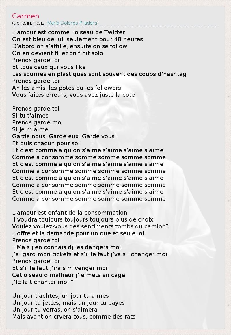 А как ты думаешь, о чем песня "Carmen" ?