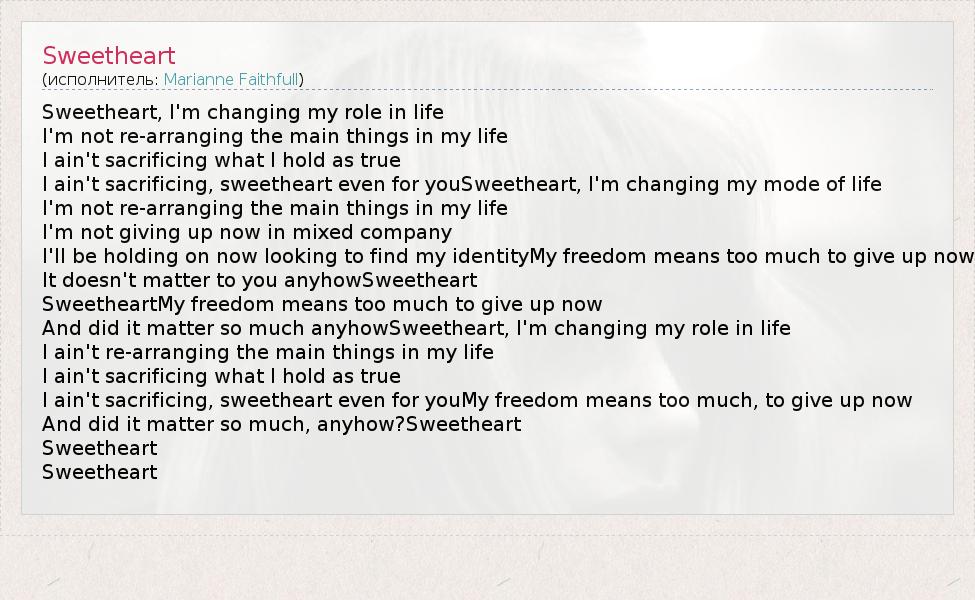 А как ты думаешь, о чем песня "Sweetheart" ?