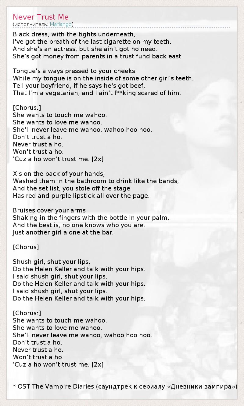 А как ты думаешь, о чем песня "Never Trust Me" ?