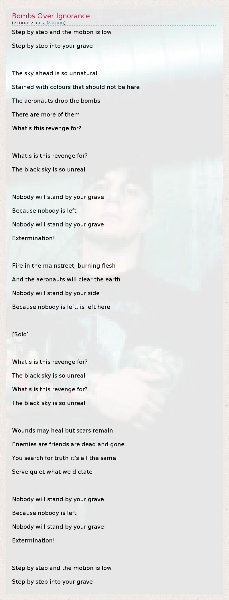 ГлавнаяИсполнителиMaroonBombs Over Ignorance
