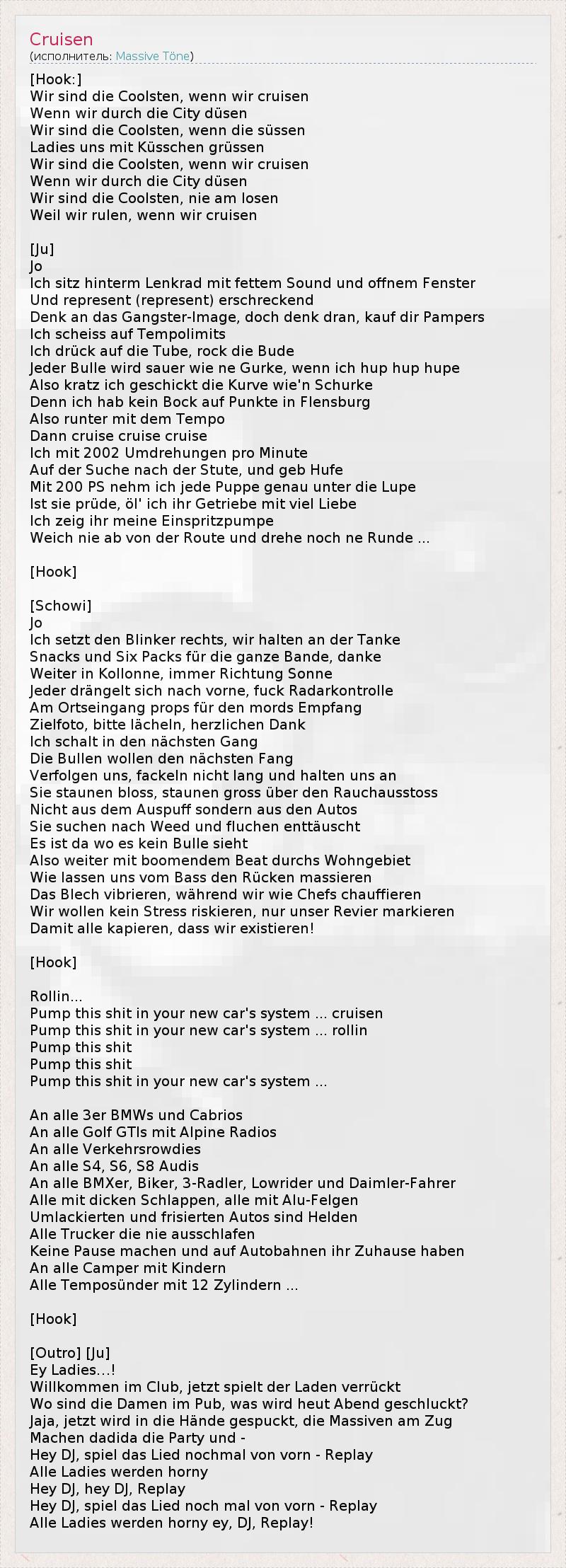 Denn ich hab kein Bock auf Punkte in Flensburg