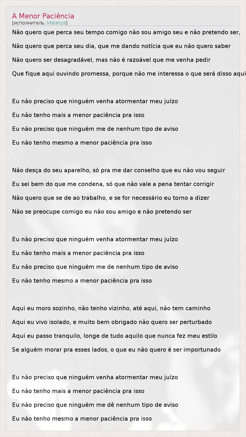 А как ты думаешь, о чем песня "A Menor Paciência" ?