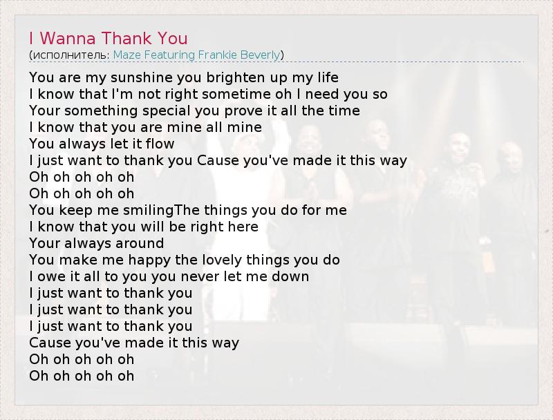 А как ты думаешь, о чем песня "I Wanna Thank You" ?