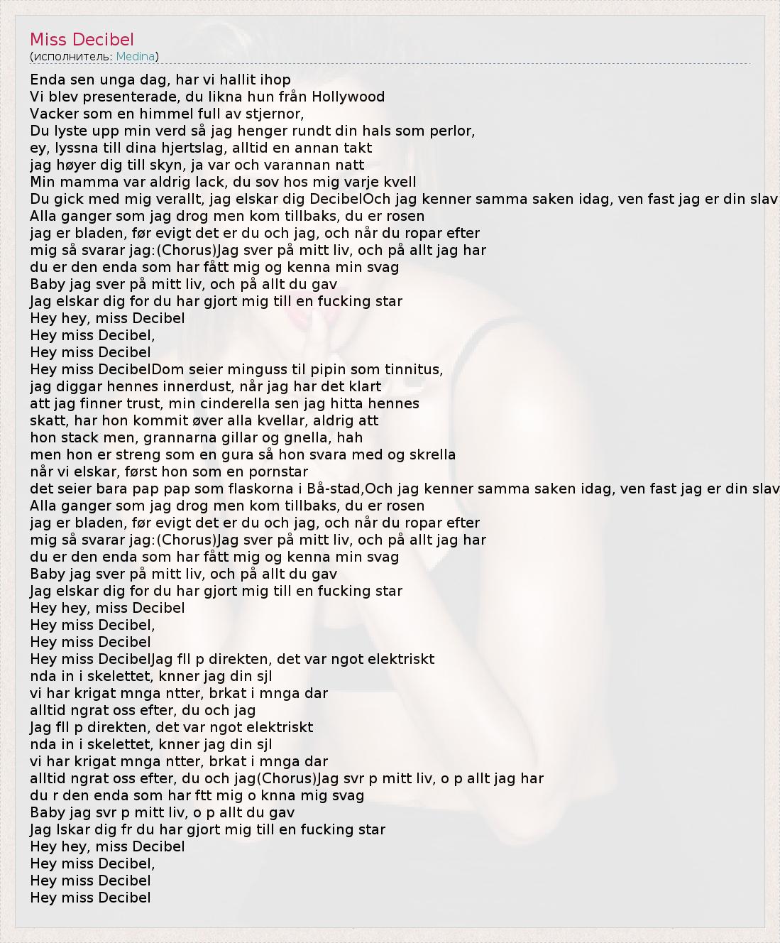 А как ты думаешь, о чем песня "Miss Decibel" ?