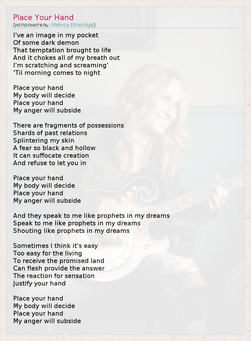 А как ты думаешь, о чем песня "Place Your Hand" ?