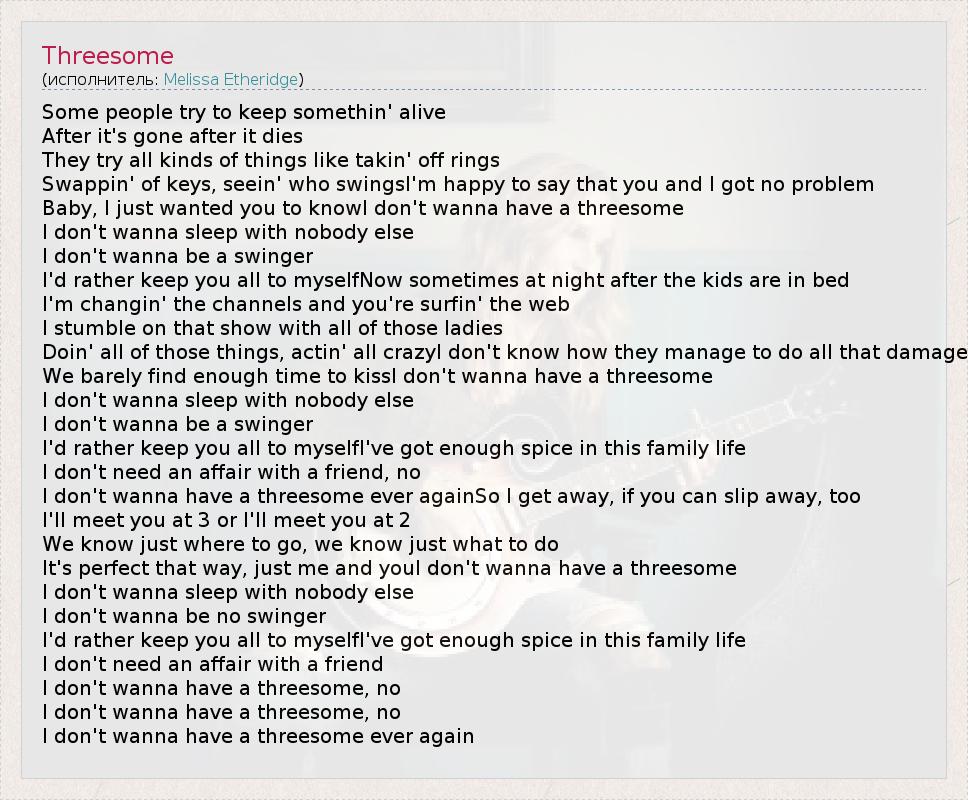 Baby, I just wanted you to knowI don't wanna have a threesome