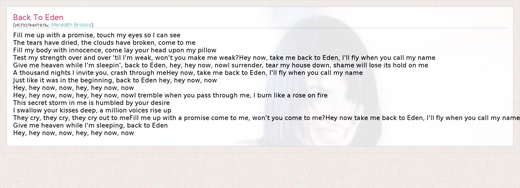 А как ты думаешь, о чем песня "Back To Eden" ?