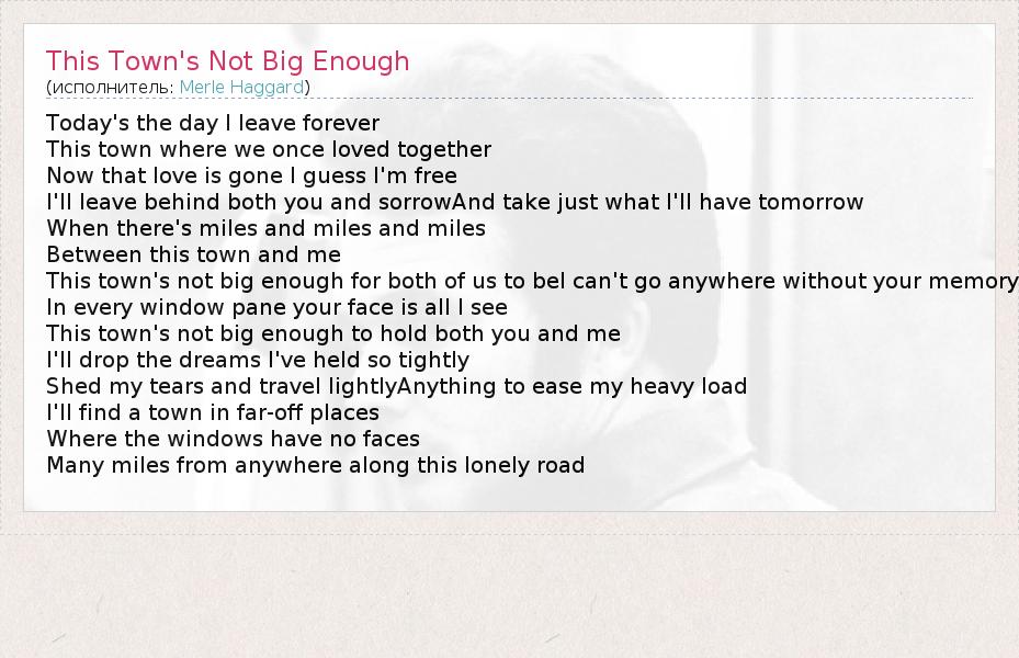 ГлавнаяИсполнителиMerle HaggardThis Town's Not Big Enough