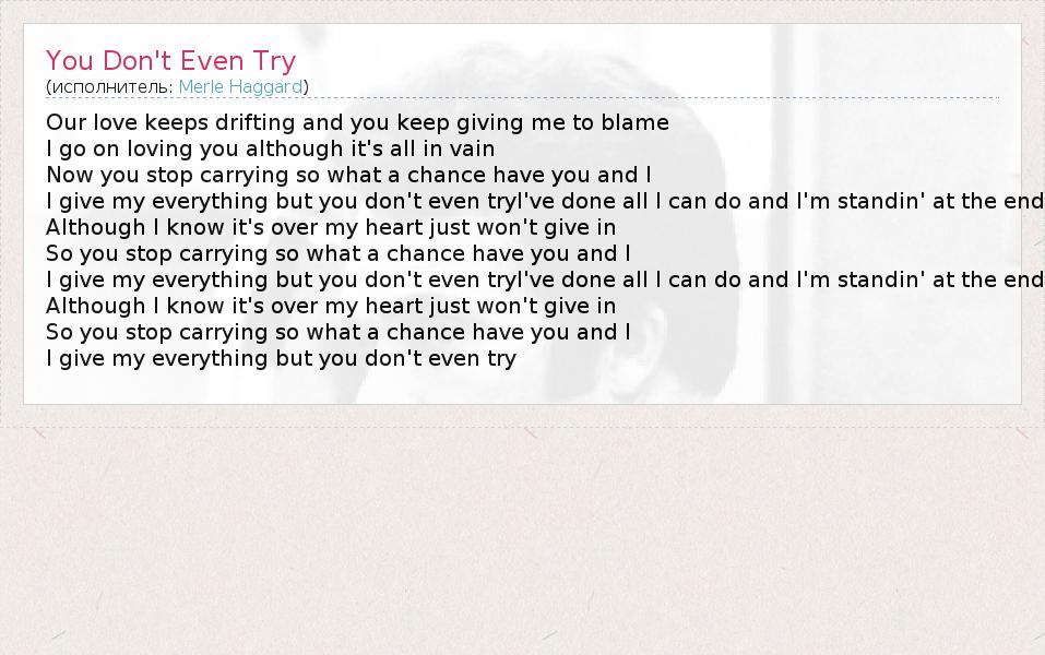 А как ты думаешь, о чем песня "You Don't Even Try" ?