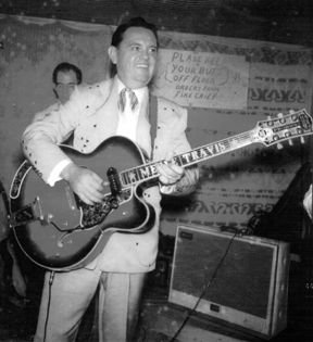 Это интересно:Merle Robert Travis (29.11.1917-20.10.1983) - американский кантри-исполнитель и композитор. Изобрел цельную электрическую гитару. Автор культового суперхита "Sixteen Tons", бывшего № 1 в 1955 г. в США в исполнении Эрни Форда (Ernie Ford).Самые популярные композиции:1946 - "Cincinnati Lou" (US Country #2)1946 - "No Vacancy" (US Country #3)1946 - "Divorce Me C.O.D." (US Country #1)1947 - "So Round, So Firm, So Fully Packed" (US Country #1)