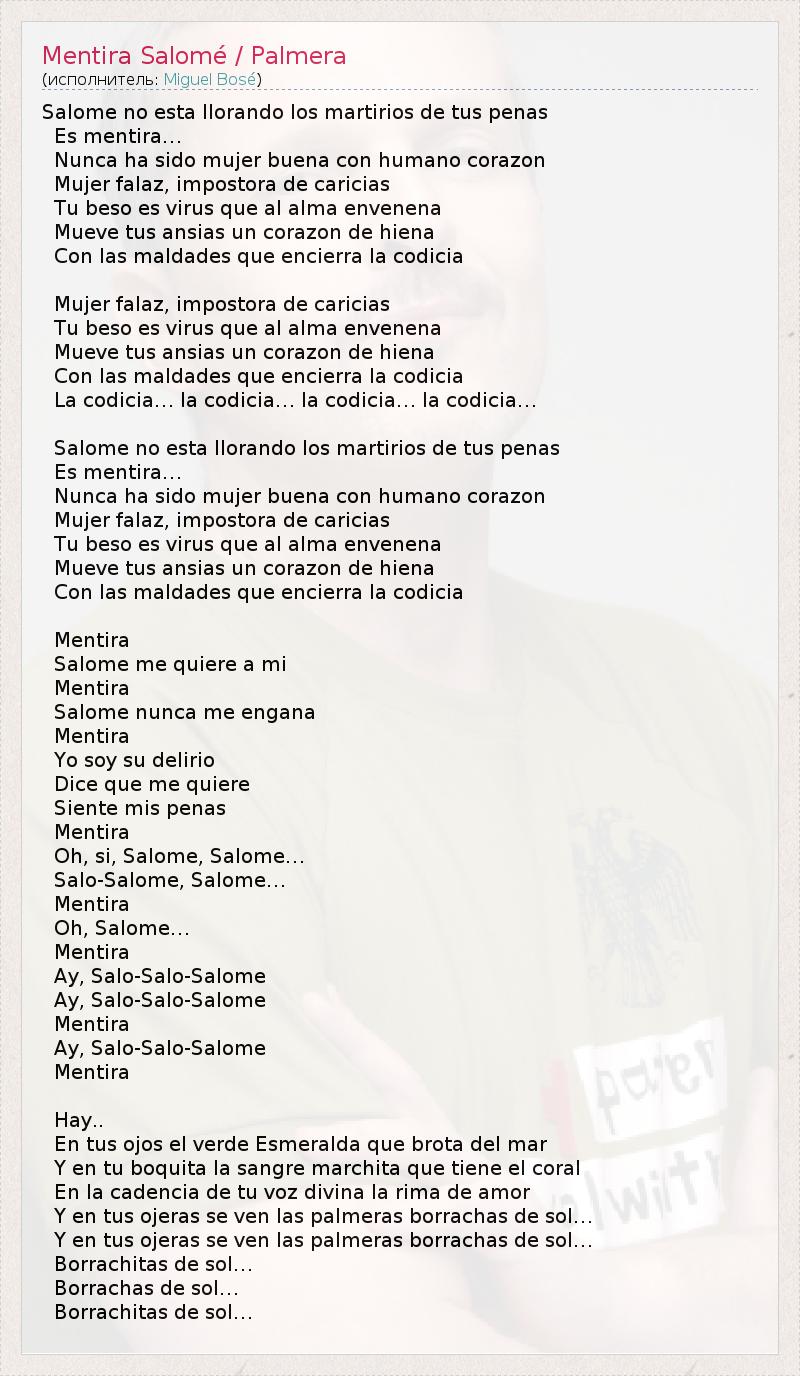 ГлавнаяИсполнителиMiguel BoséMentira Salomé / Palmera
