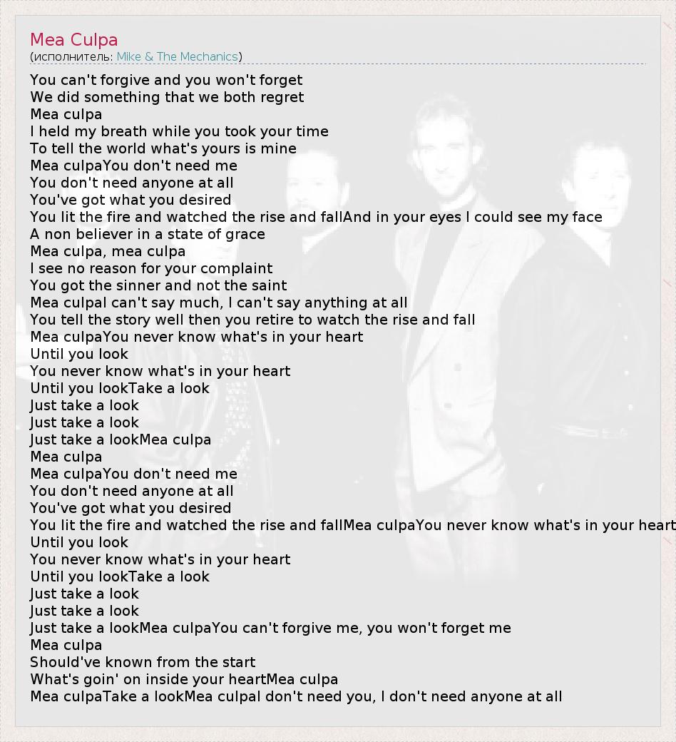 А как ты думаешь, о чем песня "Mea Culpa" ?