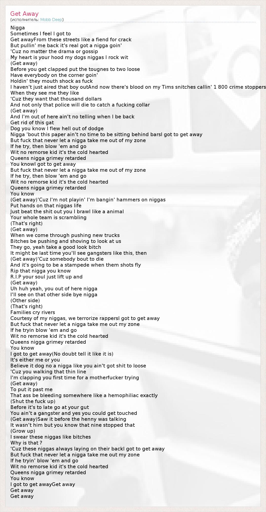 Это интересно:Mobb Deep (чит. Моб Дип) - музыкальный дуэт из Нью-Йорка, района Квинс. Группа состоит из двух участников - Хавока (Havoc) и Продиджи (Prodigy). Стиль дуэта - хардкор рэп. После того, как Mobb Deep выпустили свой второй альбом "The Infamous", о них узнали многие. Их сингл Shook Ones Pt. 2 словно взрывал все чарты. Сейчас парни в разгаре сил, и в ноябре 2011 года они выпустили "Black... продолжение
