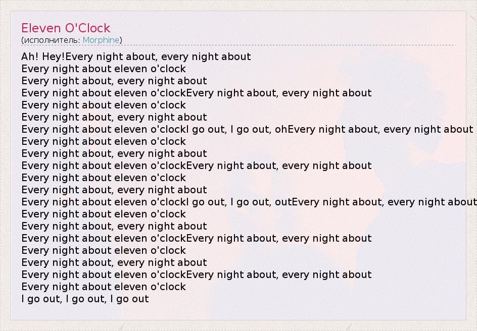 А как ты думаешь, о чем песня "Eleven O'Clock" ?