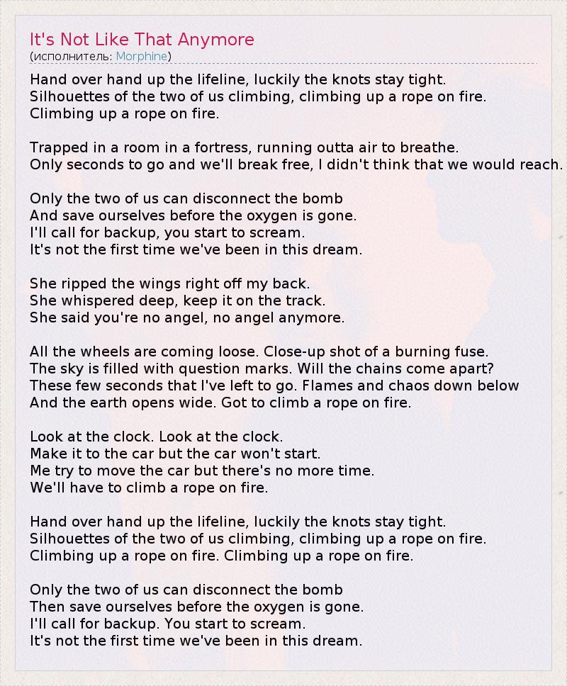 ГлавнаяИсполнителиMorphineIt's Not Like That Anymore