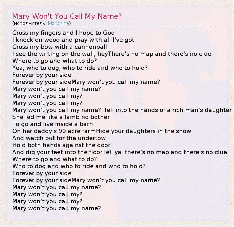 А как ты думаешь, о чем песня "Mary Won't You Call My Name?" ?