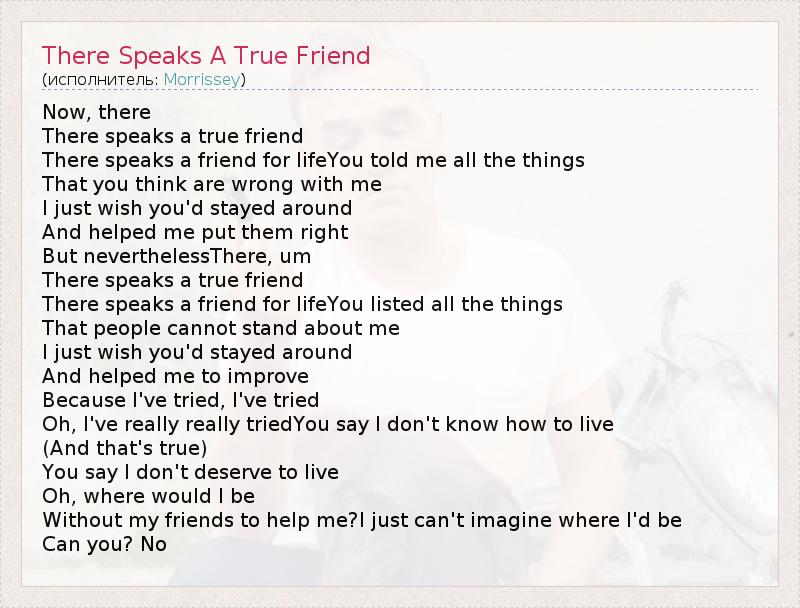 ГлавнаяИсполнителиMorrisseyThere Speaks A True Friend