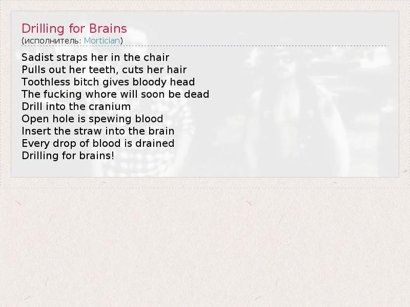 А как ты думаешь, о чем песня "Drilling for Brains" ?