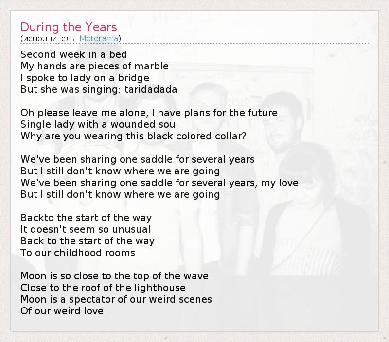 Это интересно:Motorama – группа из г.Ростов-на-Дону, Россия, образованная в 2006 году, играющая легковесный англоязычный post-punk и twee pop. Выступает в крупных городах отечества, съездила в длинный-предлинный тур по Европе.С 2007 по 2015 вышло 4 сингла, 3 EP и 3 альбомa. http://www.wearemotorama.comУчастники Motorama:Влад Паршин (Vladislav Parshin) - guitar, vocalsМаксим Поливанов (Maksim Polivanov) - guitarИрина... продолжение