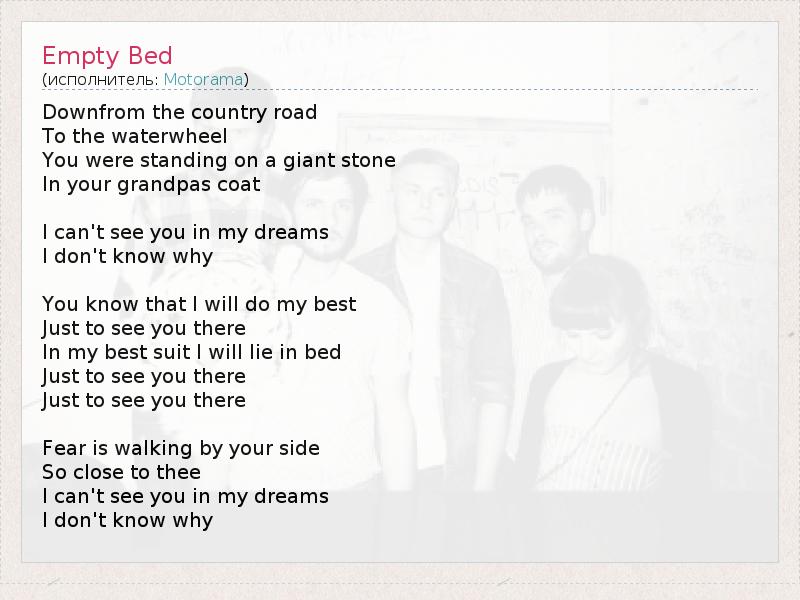 А как ты думаешь, о чем песня "Empty Bed" ?